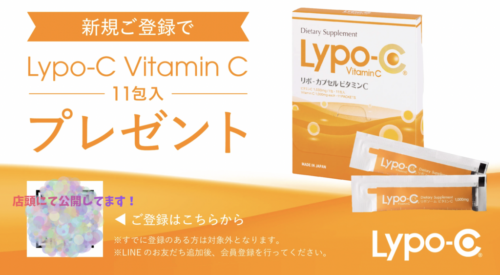 ご来店のお客様に話題のLypo-C11包入1箱モニタープレゼント実施中
